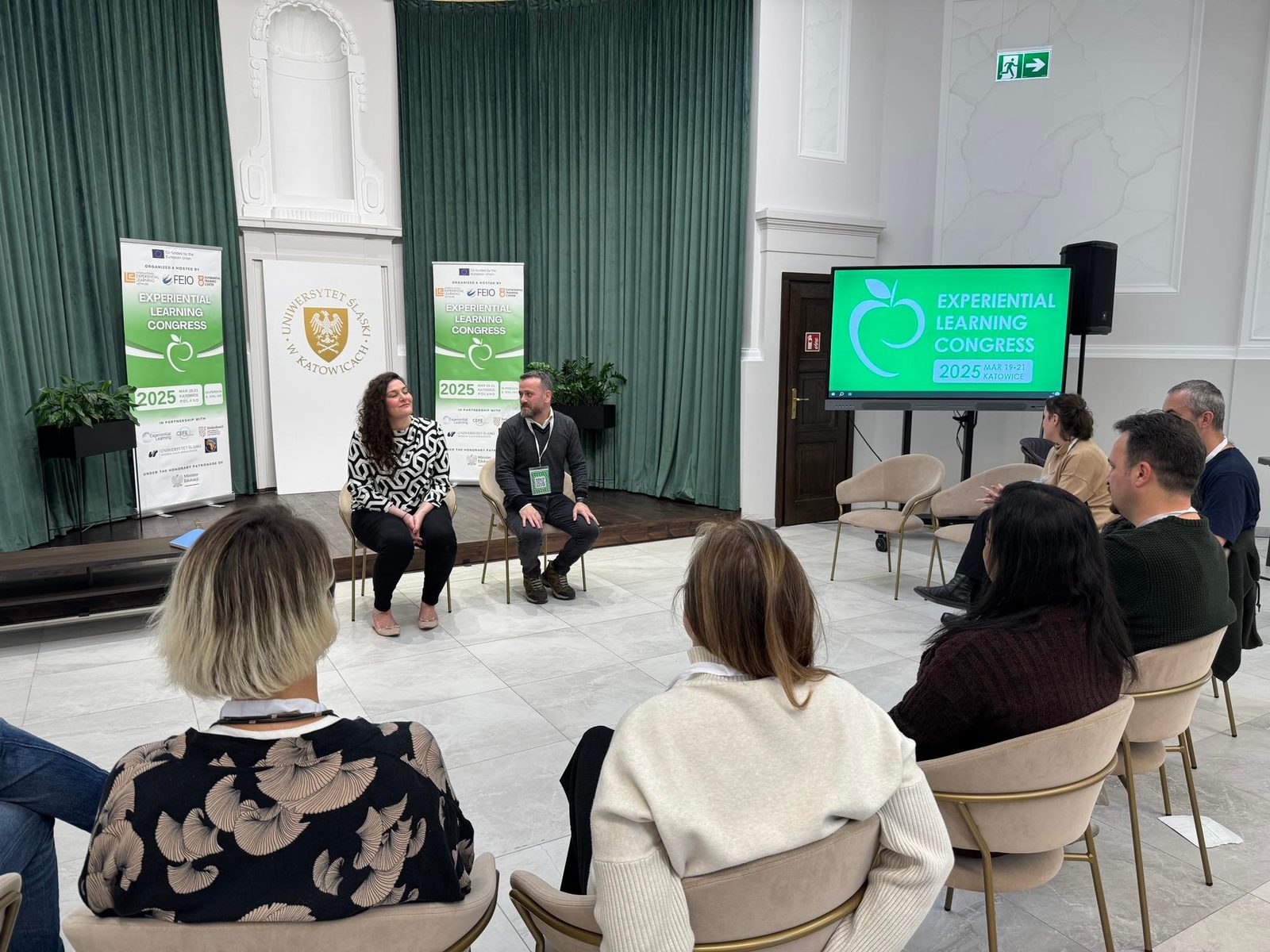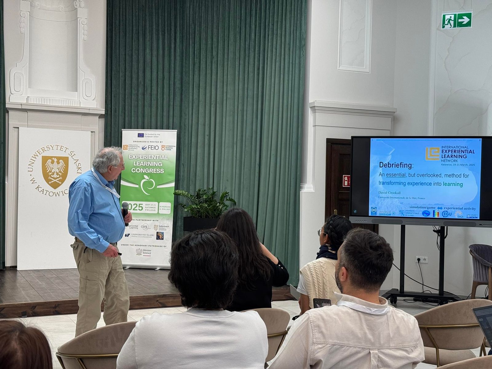 Pierwszy dzień Experiential Learning Congress 2025 w Katowicach: wirtualne wystąpienie Davida i Alice Kolbów oraz liczne warsztaty m.in. o pedagogice doświadczeniowej, adaptacji psychologicznej, debriefingu, technologiach i sporcie jako nośnikach uczenia się przez praktykę.